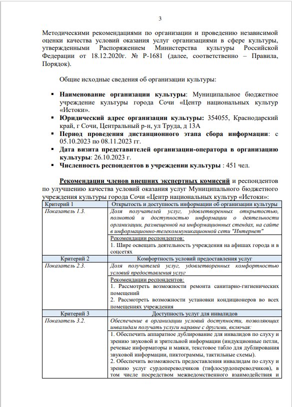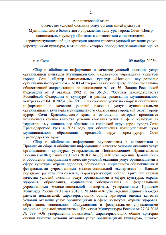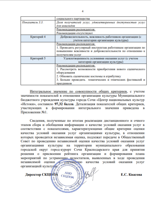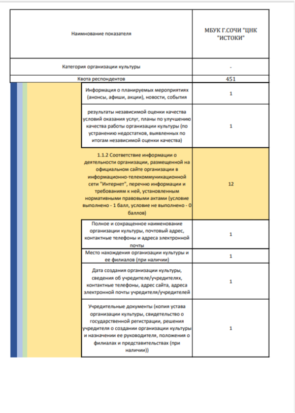 План по устранению недостатков, выявленных в ходе оценки качества оказания услуг МБУК г.Сочи "ЦНК "Истоки"