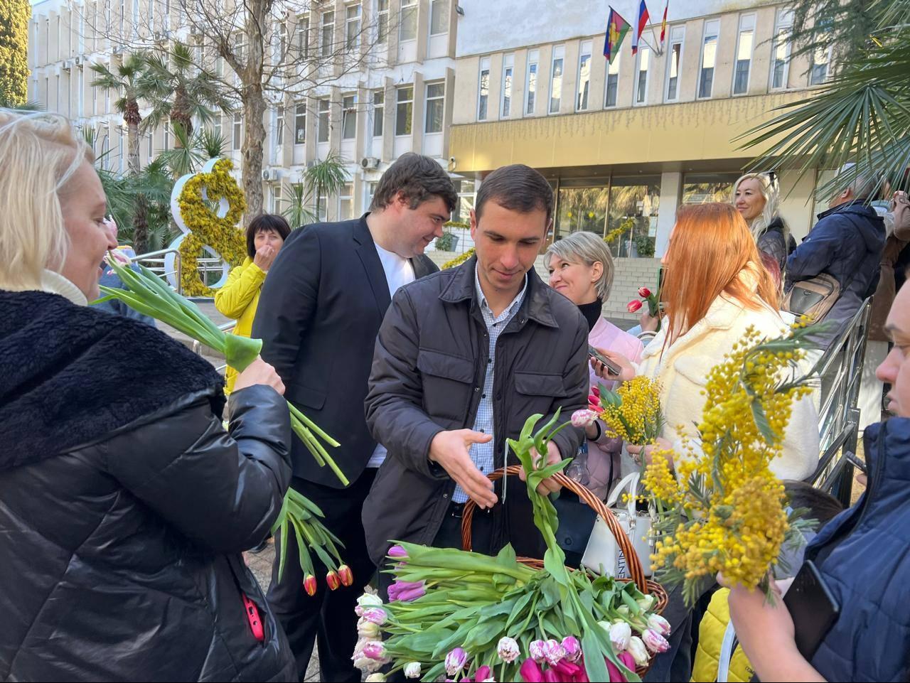 В рамках акции «Дарите женщинам цветы» сотрудники администрации района поздравили милых дам весенними букетами цветов.